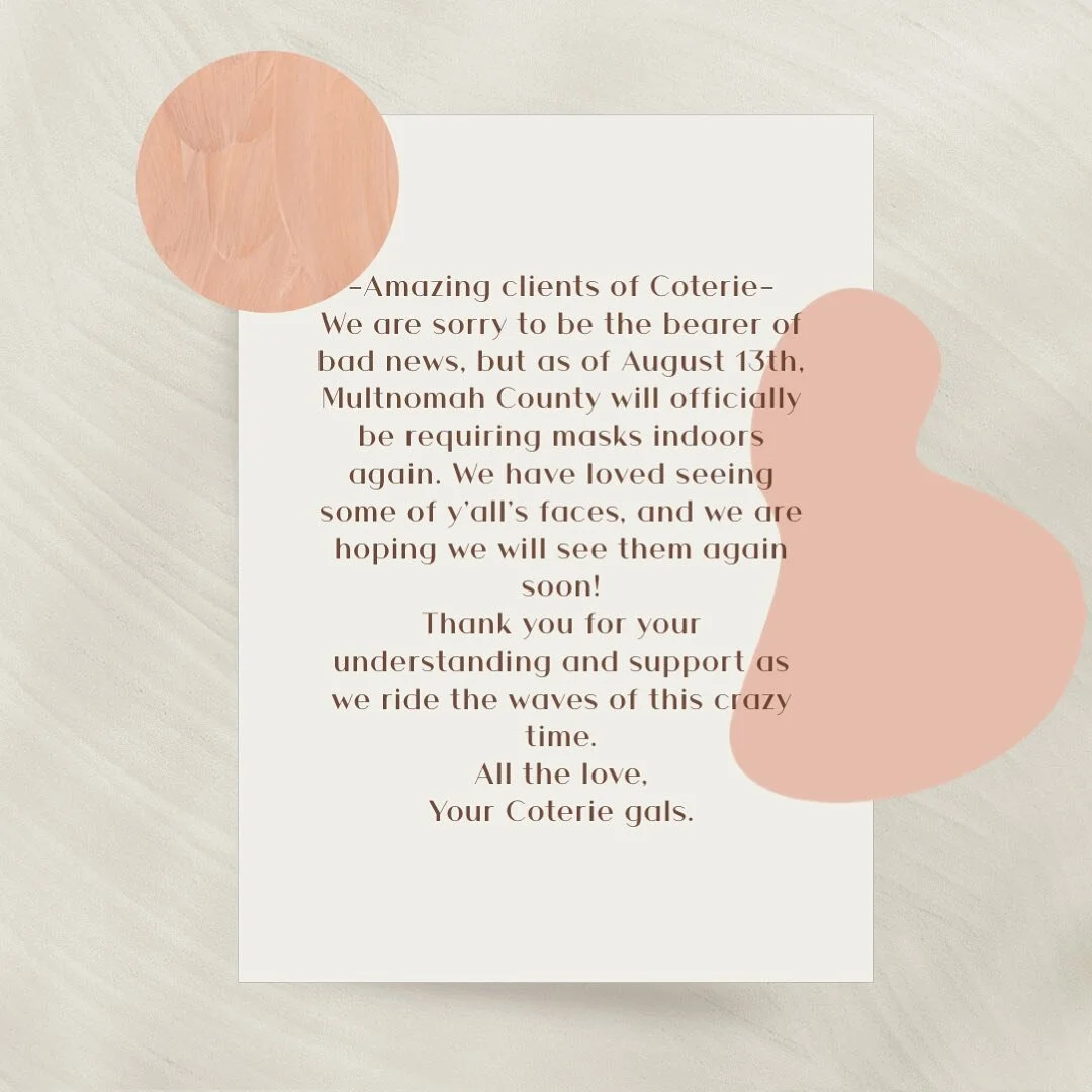 Coterie has a 48 hour cancellation policy. Any appointments that are no showed or cancelled within 24 hours of the appointment may result in a charge for the appointment, and may require a deposit before rebooking. Thank you!